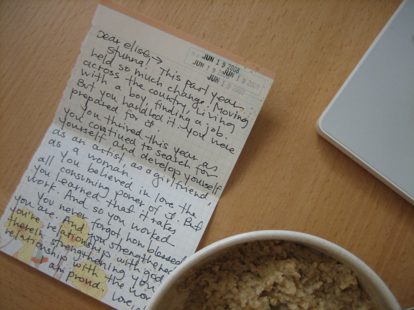 Today I opened my letter. I could not remember what I wrote. Turns out I was generic. With nearly everything. But today when my present self read what my future self wrote I felt peace. Radiating from who I was on May 18, 2007 and from who I am today.